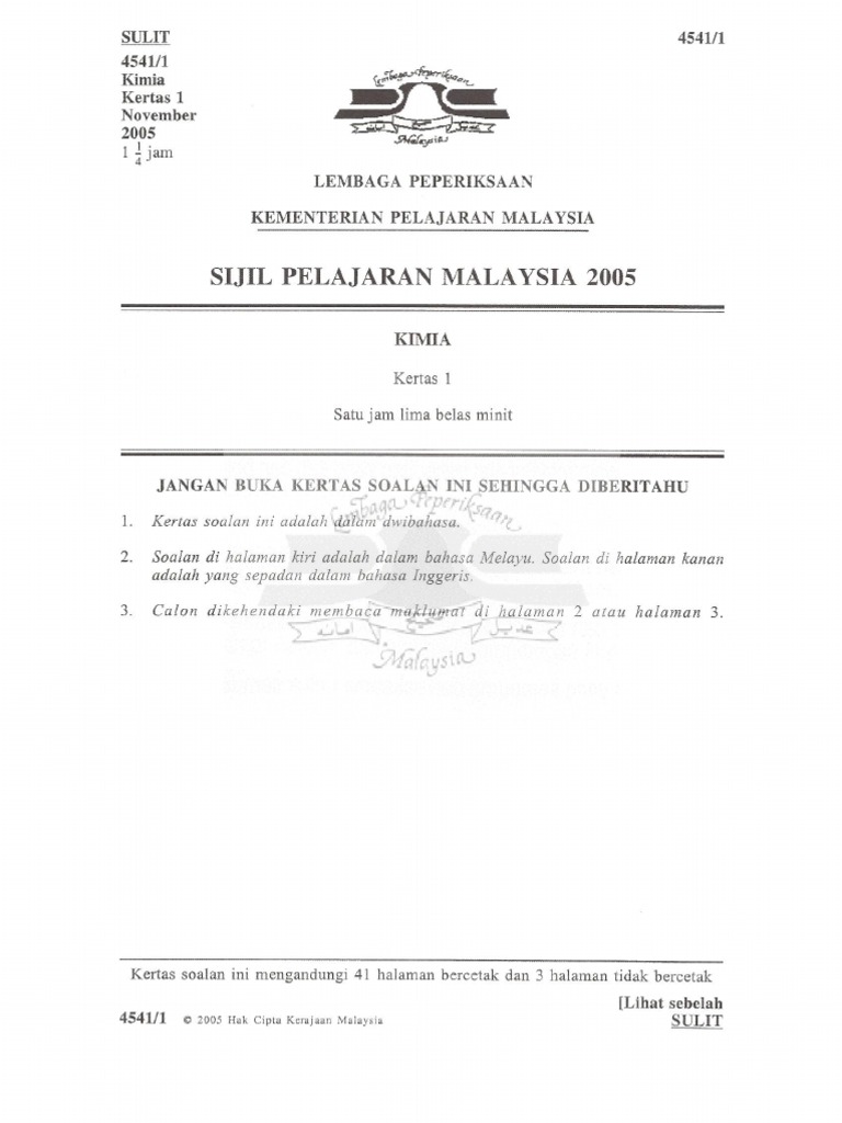 Soalan Kimia SPM 2005. Cdgn Jwpn ChemQuest2018- utk soalan. These real SPM past years papers are useful to test your mastery of the topics covered in SPM.