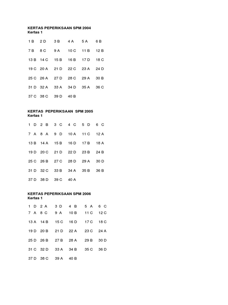 SPM 2005 Past year paper answers Part C. Actual SPM Exam Papers Kertas Soalan Peperiksaan SPM Sebenar These are the actual SPM exam papers kertas soalan peperiksaan SPM sebenar. Cadangan skema jawapan Soalan Percubaan SPM 2005 MRSM.
